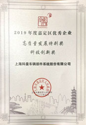 2020年1月獲得上海市嘉定區(qū)人民政府頒發(fā)的“科技創(chuàng)新獎”